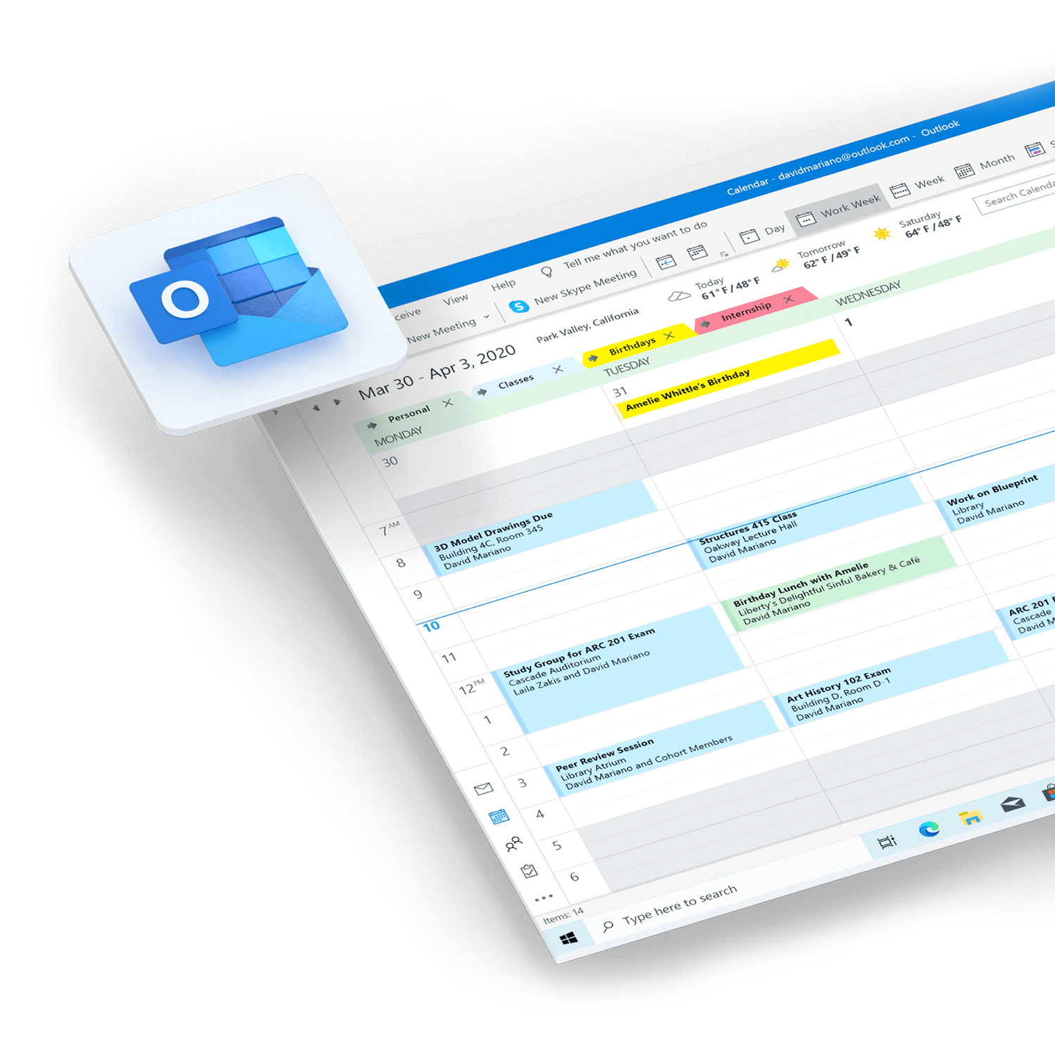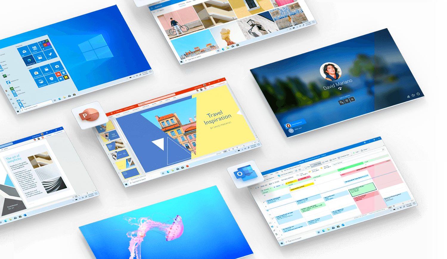 Organize o seu dia e descubra tempo para relaxar através do Outlook incluído no Microsoft 365. Aceda ao seu endereço de e-mail e calendário personalizados, em qualquer dispositivo, seja desktop ou móvel. Além disso, os PCs com Windows 10 e com SSD carregam vídeos anexos a e-mails 4,7 vezes mais rápido.4