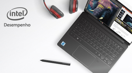 Procura o processador Intel® Core™", de 7ª ou 8ª geração, que mais se ajusta às tuas necessidades. O processador Intel® Core™ i3 é suficiente para tarefas quotidianas, como editar documentos, gerir emails ou navegar na internet. Se trabalhas com software profissional e executa várias tarefas ao mesmo tempo, considera um portátil com o processador Intel® Core™ i5. Para programas avançados, de criação e edição de conteúdo multimédia ou jogos exigentes, opta pelo processador Intel® Core™ i7.